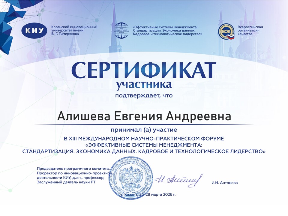 С 26 по 28 марта команда Казанского ГАУ в составе старшего преподавателя Евгении Алишевой и студентов Софии Халиковой (гр. Б531-05), Назили Музафаровой (гр. С541-07), Карины Хайруллиной (гр. С541-07) и Ольги Парамоновой (гр. Б541-04) приняла участие в DATA-Хакатоне «Пространство роста». Мероприятие прошло в рамках XIII Международного научно-практического форума «Эффективные системы менеджмента: стандартизация. Экономика данных. Кадровое и технологическое лидерство» на базе Казанского инновационного университета имени В.Г. Тимирясова.