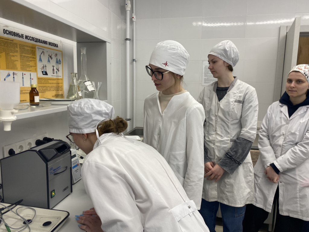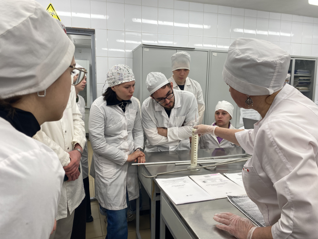 2 апреля практическое погружение продолжили другие группы. Студенты С521-04 изучали лабораторные методы диагностики мяса, молока и мёда в Агропромышленном парке, осваивали экспресс-анализ для выявления фальсификата и контроля качества, а также разбирали алгоритмы оформления ветеринарных документов.