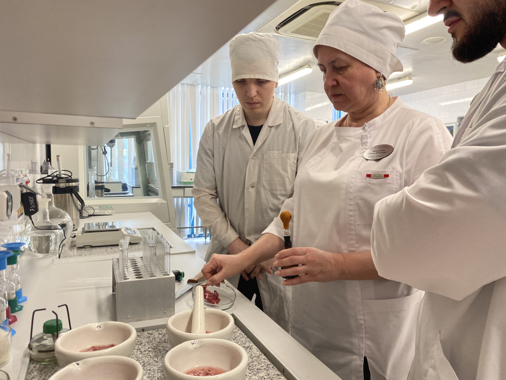В этот же день группа С521-03 побывала в лаборатории №1 Агропромышленного комплекса Казани. Студенты увидели, как проводится экспертиза продукции, познакомились с алгоритмами оформления документов и методами быстрой диагностики. Особое внимание уделили практическим аспектам: послеубойному осмотру, клеймению туш и выявлению подделок.