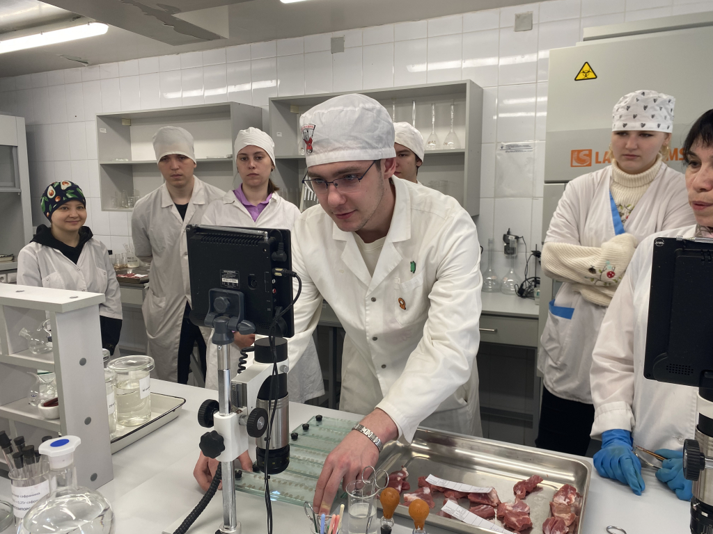 1 апреля студенты группы С521-05 посетили лабораторию №10 на Центральном рынке. Будущие специалисты изучили работу всех отделов, процесс ветеринарно-санитарной оценки мяса, рыбы, молока, мёда и растительной продукции, а также методы экспресс-диагностики и нюансы оформления ветеринарных сопроводительных документов. Сотрудники наглядно показали процедуру послеубойного осмотра туш и внутренних органов, правила клеймения и современные способы выявления фальсификата.